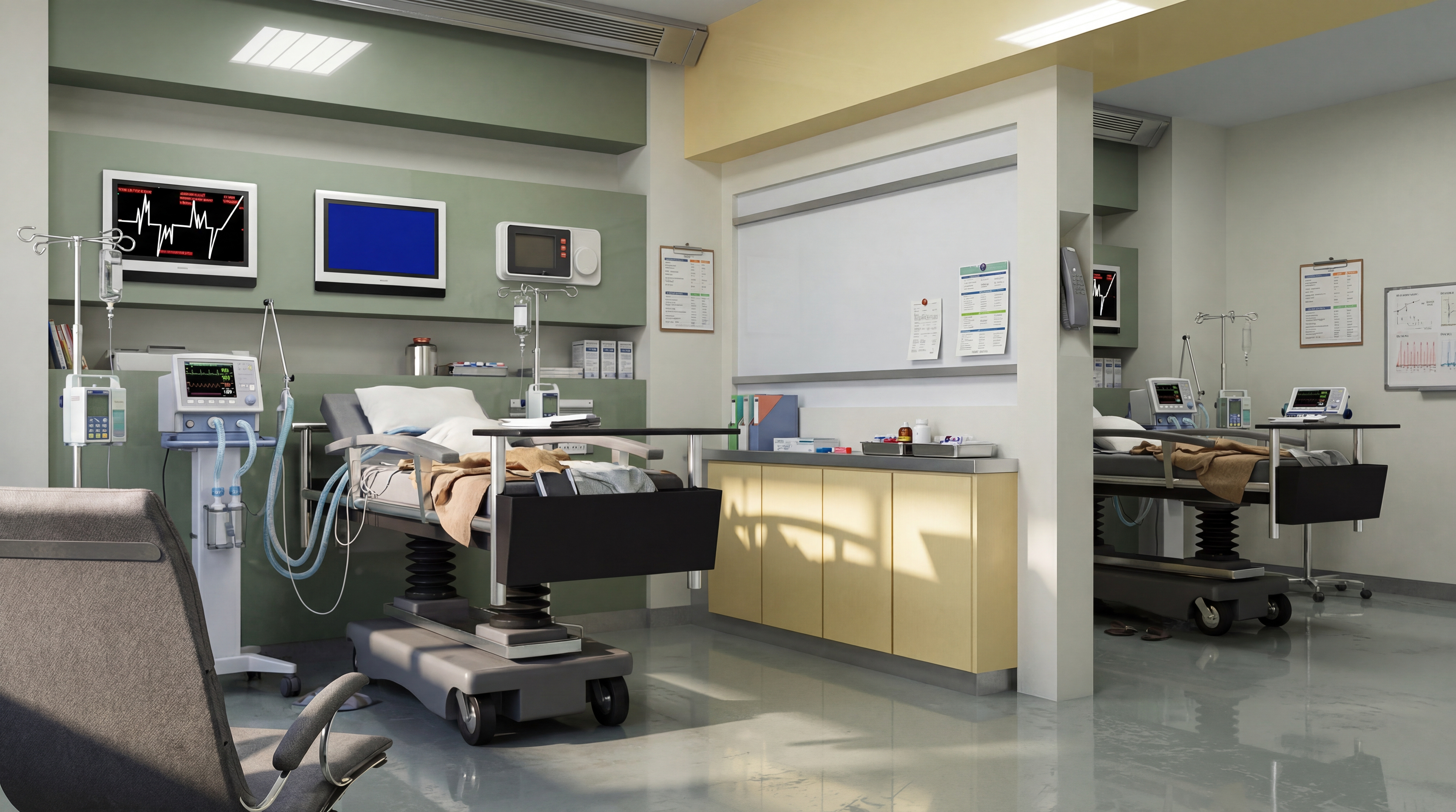 The project encompasses all critical functional components required in a contemporary emergency department, including a triage unit, emergency examination and treatment rooms, resuscitation area, observation bays, doctor and nurse stations, medication preparation and equipment rooms, patient waiting areas, a pediatric emergency waiting and play zone, medical supply storage, and dedicated stretcher and equipment circulation corridors. Le projet couvre l’ensemble des unités essentielles requises dans un service d’urgences contemporain, notamment : l’unité de triage, les salles d’examen et de traitement, la salle de réanimation, les unités d’observation, les postes médecins–infirmiers, les salles de préparation médicamenteuse et d’équipement, les espaces d’attente des patients, la zone d’attente et de jeux pour les urgences pédiatriques, les réserves de matériel médical, ainsi que les circulations dédiées aux brancards et équipements.