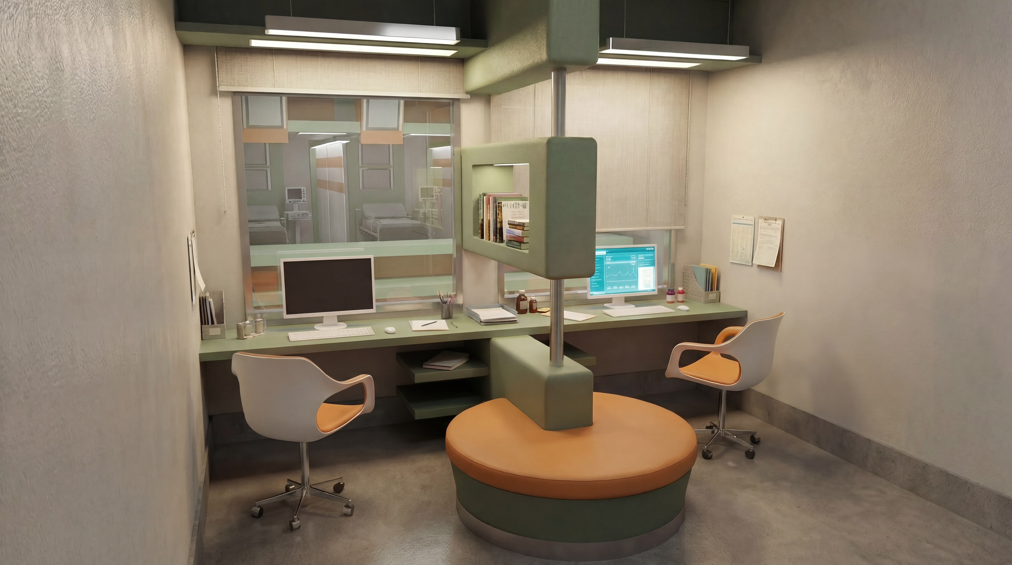 The spatial organization is shaped by design decisions that enhance visual control, support a hygienic workflow, and create a calming environment-using transparent partitions, a restorative color palette, durable healthcare - grade materials, and intuitive wayfinding strategies. Addressing the differing psychological and operational needs of both adult and pediatric emergency units, the project achieves a professional and holistic emergency department design, despite being developed in an academic context. The project is archived at Anadolu University. L’organisation spatiale est guidée par des choix de conception visant à renforcer le contrôle visuel, soutenir un flux de travail hygiénique et créer une atmosphère apaisante - grâce à l’usage de cloisons transparentes, d’une palette chromatique douce, de matériaux hospitaliers durables et d’une signalétique intuitive. Répondant aux besoins psychologiques et opérationnels distincts des unités d’urgences adultes et pédiatriques, le projet aboutit à une conception professionnelle, cohérente et holistique d’un service d’urgences, bien qu’il ait été développé dans un cadre académique. Le projet est archivé à l’Université Anadolu.