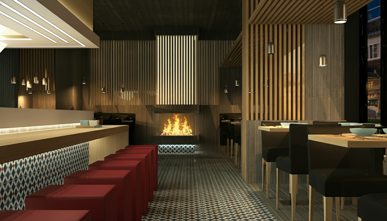 This project was designed for a restaurant located in Morges and consists of several distinct units such as the winter garden, terrace, bar area, main dining room, and more intimate seating zones, accommodating a total of 147 guests. Beyond fulfilling the standard functions of a restaurant, the design aims to create warm, semi-private (pseudo-private) spaces where visitor groups can comfortably spend time together. The existing raw concrete interior walls have been preserved, while the partition elements, bar, welcome counter, and service counter are constructed using a combination of raw concrete, wood, and ceramic surfaces. This material palette gives the space a natural, inviting, and timeless character. A large glass wall between the kitchen and the dining area adds transparency and a sense of liveliness, fostering a social dynamic that enhances the welcoming atmosphere of the restaurant. Ce projet, conçu pour un restaurant situé à Morges, se compose de plusieurs unités distinctes - le jardin d’hiver, la terrasse, l’espace bar, la salle à manger principale ainsi que des zones d’assise plus intimistes - pouvant accueillir jusqu’à 147 personnes. Au-delà de la fonction classique d’un restaurant, l’objectif est de créer des espaces chaleureux et semi-privés (pseudo-private) où les groupes de visiteurs peuvent passer un moment convivial en toute aisance. Les murs intérieurs en béton brut ont été conservés, tandis que les éléments de séparation, le bar, le comptoir d’accueil et le comptoir de service ont été réalisés en béton brut associé au bois et à la céramique. Cette combinaison de matériaux apporte au lieu un caractère naturel, accueillant et intemporel. Une grande paroi vitrée entre la cuisine et la salle de restaurant renforce la transparence et la dynamique sociale, contribuant à l’atmosphère chaleureuse et conviviale du restaurant.
