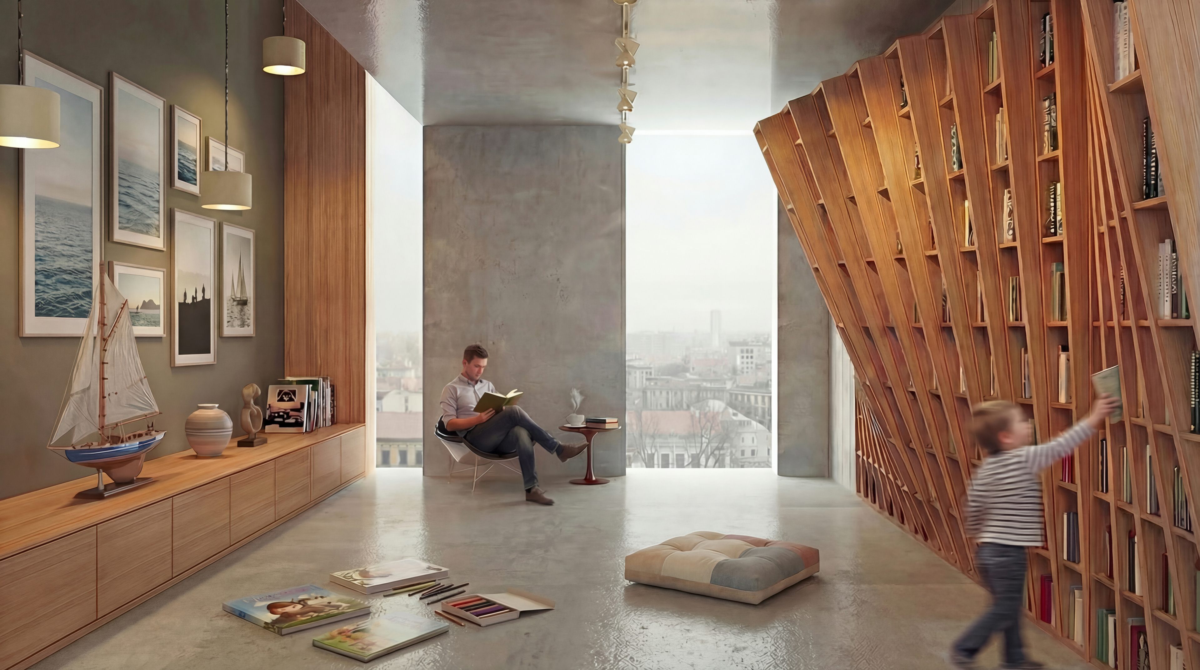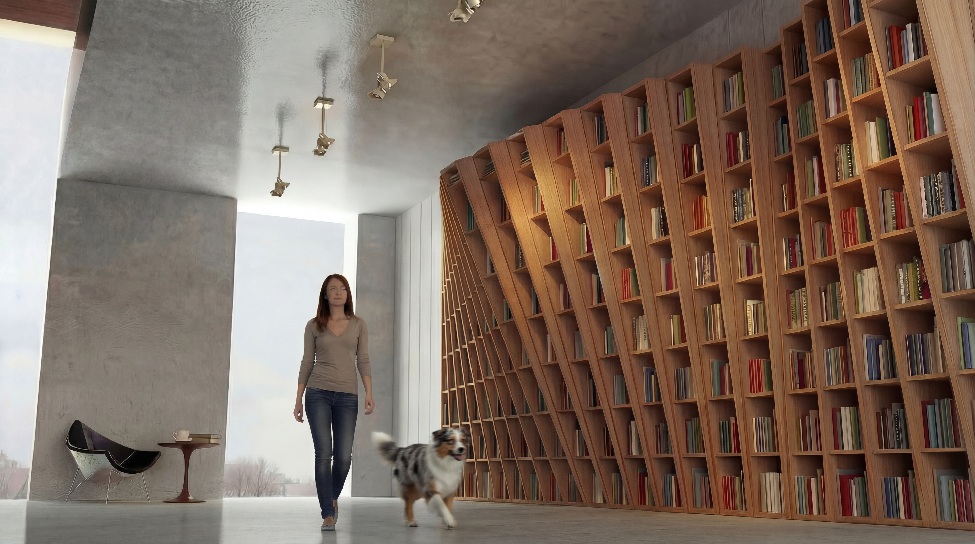 This library system was designed for a loft apartment in Istanbul, incorporating a home office within a spacious interior that allows the furniture to define the overall character of the space. The core idea of the design stems from transforming the structure of a simple shelf into a distinctive architectural form. Built in sequential segments, the shelves play with angled compositions, creating a sense of spatial movement and rhythm. Serving both as a functional storage unit and a defining architectural element, the system shapes the volume through its structural repetition and dynamic geometry. Ce système de bibliothèque a été conçu pour un loft à Istanbul intégrant un bureau à domicile, dans un espace généreux où le mobilier participe à définir l’identité du lieu. L’idée principale du design provient de la transformation de la structure d’une simple étagère en une forme architecturale distinctive. Construits en séquences, les modules jouent avec les angles afin de créer un mouvement et un rythme dans l’espace. Fonctionnant à la fois comme unité de rangement et comme élément architectural, le système façonne le volume grâce à sa répétition structurelle et à sa géométrie dynamique.
