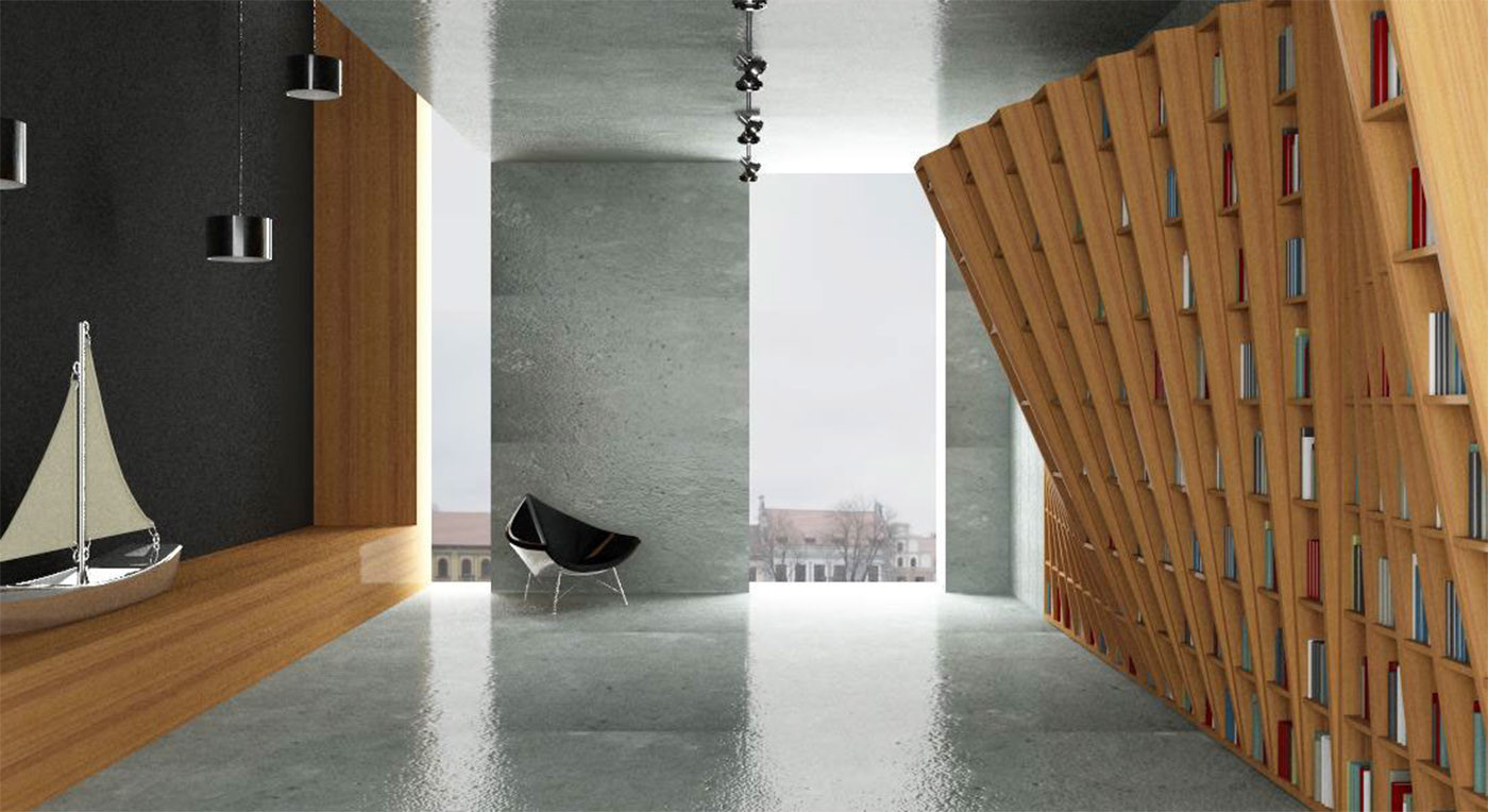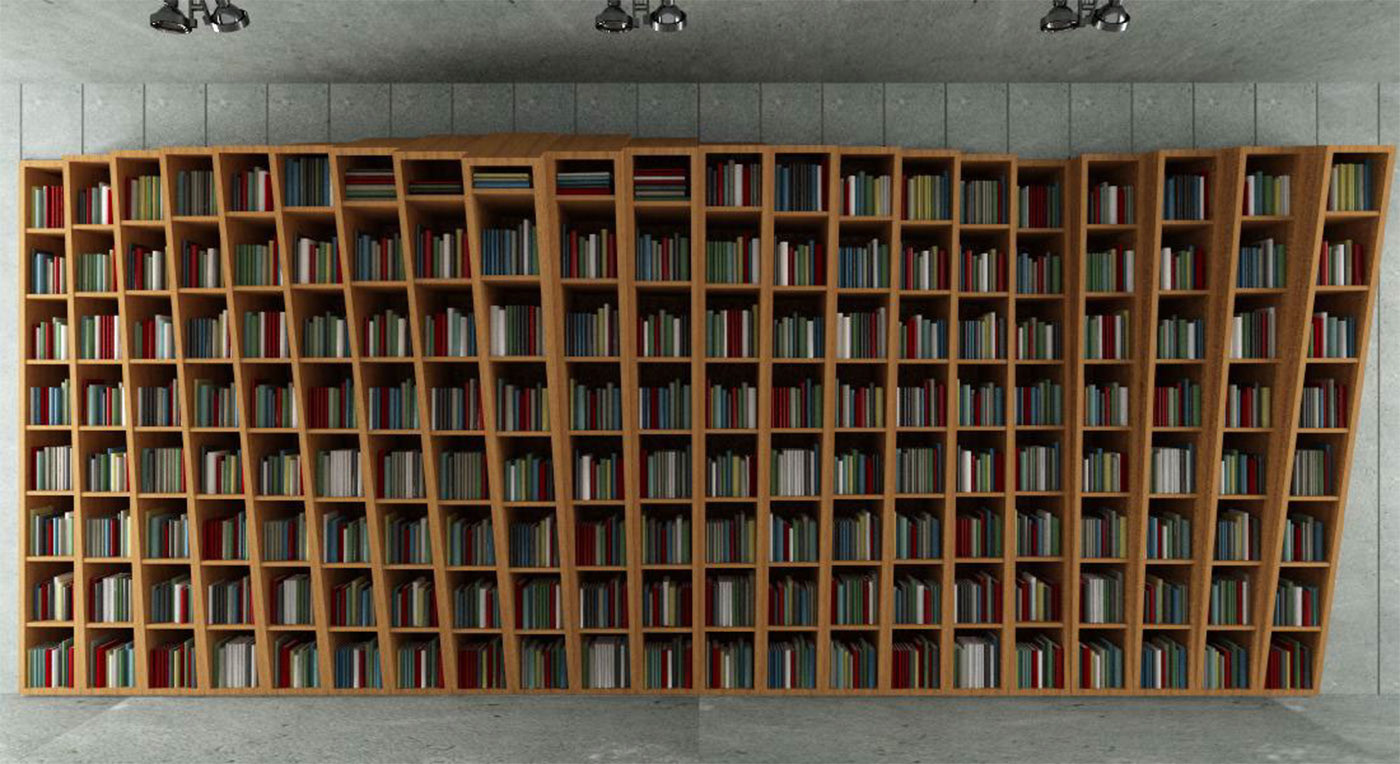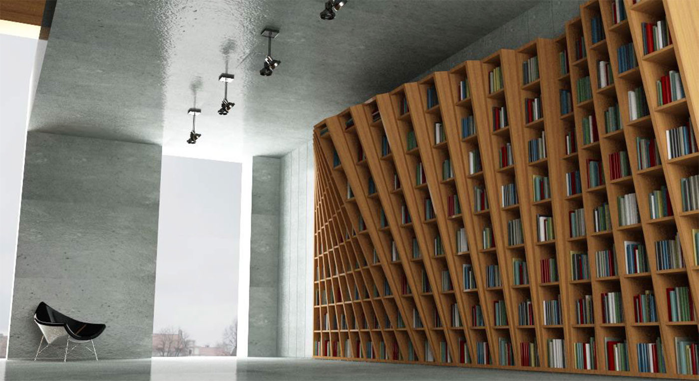 This library was designed for a loft in Istanbul including a home office, a vast space allowing you to install this furniture that defines the space. The main idea of this design is coming from the structure of a simple shelf which is transformed into a different form. Built in sequences, the design plays with angles to create movement in space. Cette bibliothèque a été conçue pour un loft à Istanbul incluant un bureau à domicile, un vaste espace permettant d'installer ce mobilier qui délimite l'espace. L'idée principale de ce design est de partir de la structure d'une simple étagère pour en faire une forme différente. Construit en séquences, le design joue avec les angles pour créer un mouvement dans l'espace.